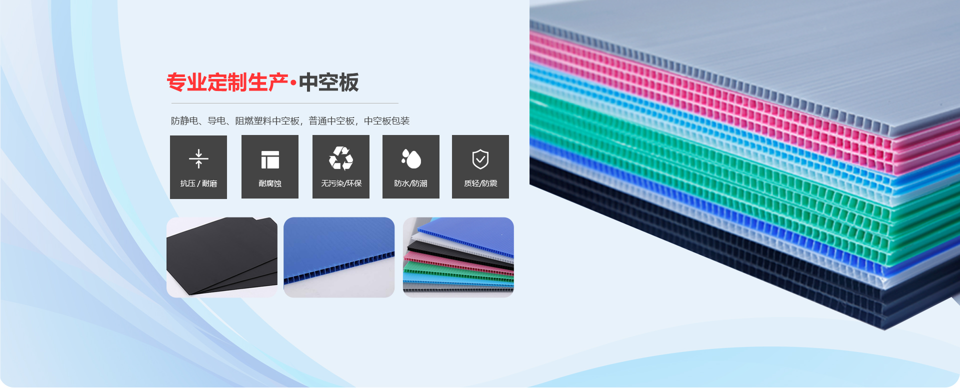 威海莊正塑料中空板有限公司是一家專注于圍板箱產品和中空板產品研究、開發(fā)、生產及銷售的高科技企業(yè)。我司專業(yè)生產銷售圍板箱、防靜電、導電、阻燃塑料中空板,普通中空板,中空板包裝等。是一家及研發(fā)、設計、生產、銷售一體化的專業(yè)制造商。產品具有質輕、防潮、耐油污、抗腐蝕、無毒、無污染顏色豐富的新型環(huán)保產品。 主要產品:圍板箱、普通塑料中空板,防靜電、導電塑料中空板,中空板周轉箱,中空板包裝箱,中空板墊板,中空板托盤、塑料包裝制品等系列產品。